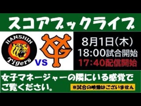 スコアブックライブ 8月1日 阪神VS巨人 甲子園球場100周年記念日