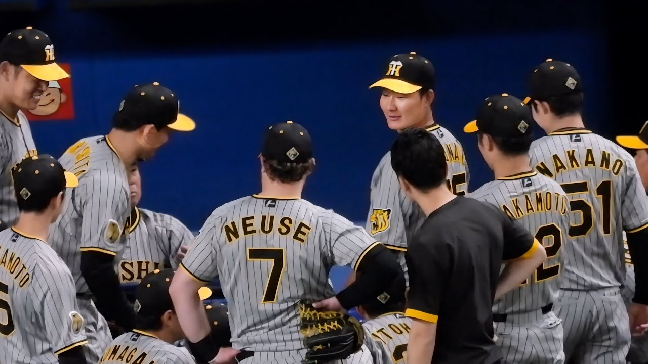 【え?!終わったの?】渡邉諒さんの声出しが終わっても全く反応しない阪神ナイン。円陣後に近本からニッコニコで何か言われる 2024.5.16
