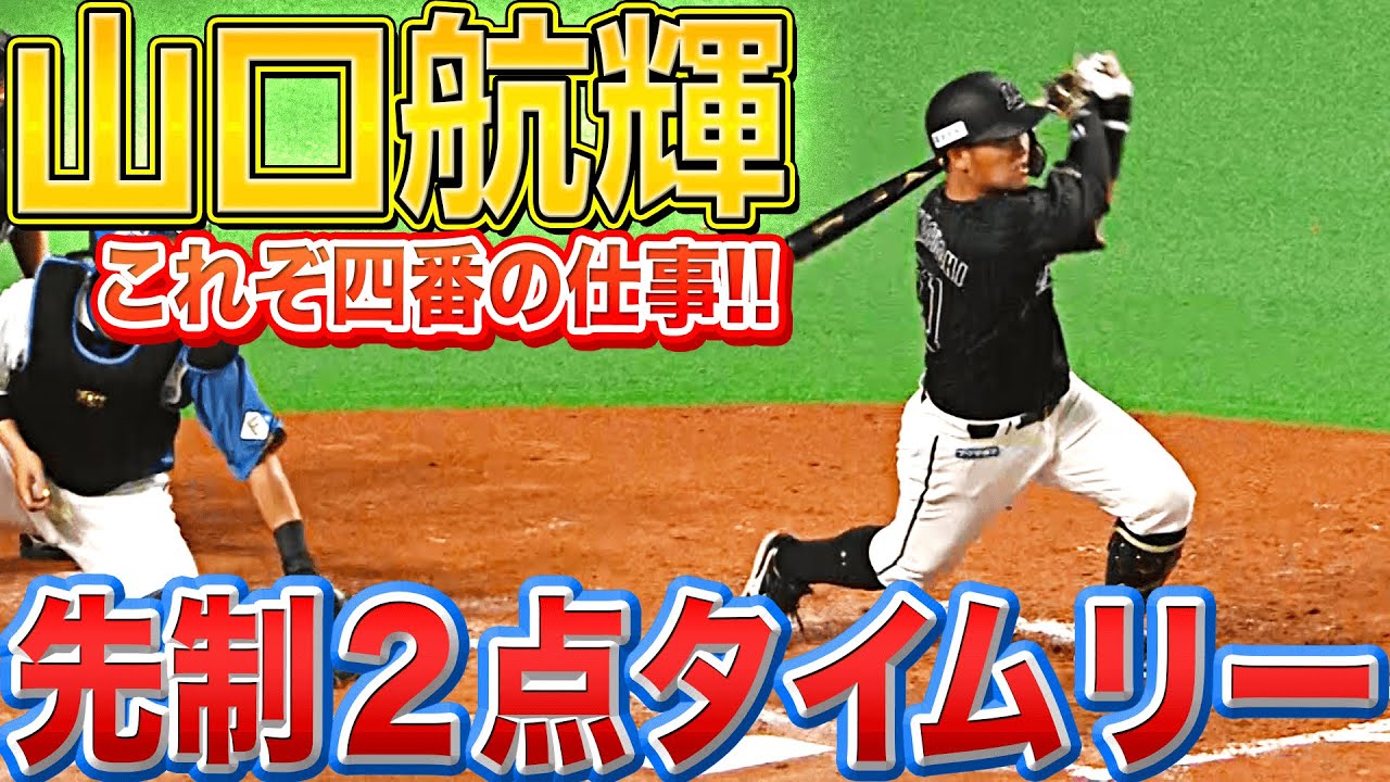 これぞ4番の仕事!と言える見事な一打。千葉ロッテ・山口航輝が満塁の好機で2点タイムリーヒットを放つ!! 魅力あふれる力強いスイングにご注目あれ。