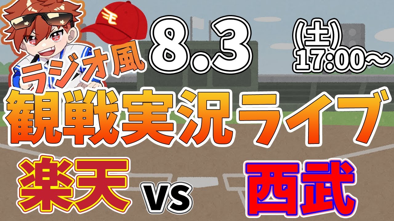 【観戦ライブ配信】徹底解説!プロ野球 楽天イーグル VS 西武 #rakuteneagles #東北楽天ゴールデンイーグルス 8/3【ラジオ実況風】