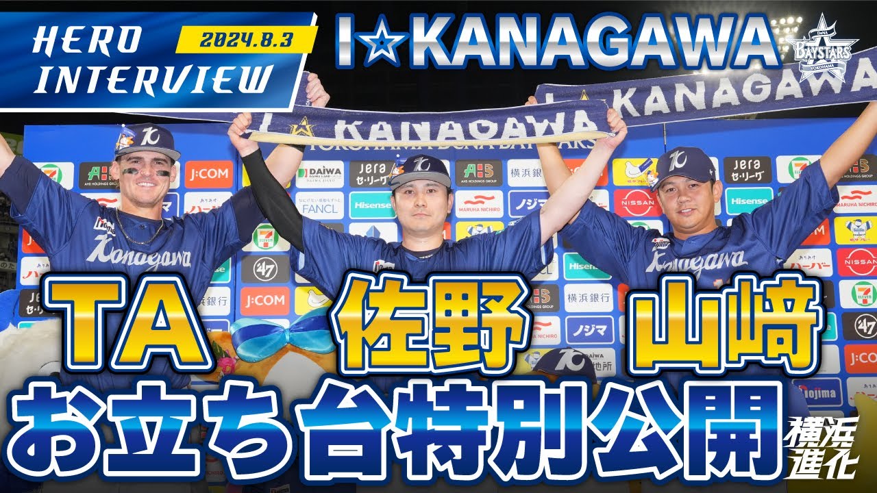 【I☆KANAGAWA】山﨑康晃選手、T.オースティン選手、佐野恵太選手のお立ち台を大公開!!| 2024.8.3のヒーローインタビュー