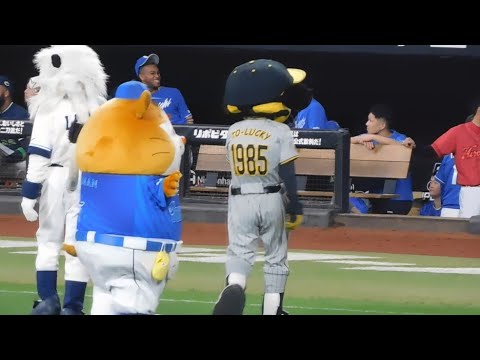 【やりたい放題】グラウンド整備中 好き勝手暴れ回るマスコットたち