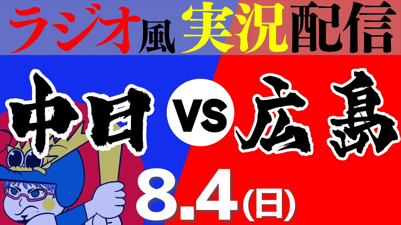 【ドラゴンズ応援実況】8/4(日) 広島東洋カープVS中日ドラゴンズ【プロ野球ライブ ラジオ風実況】