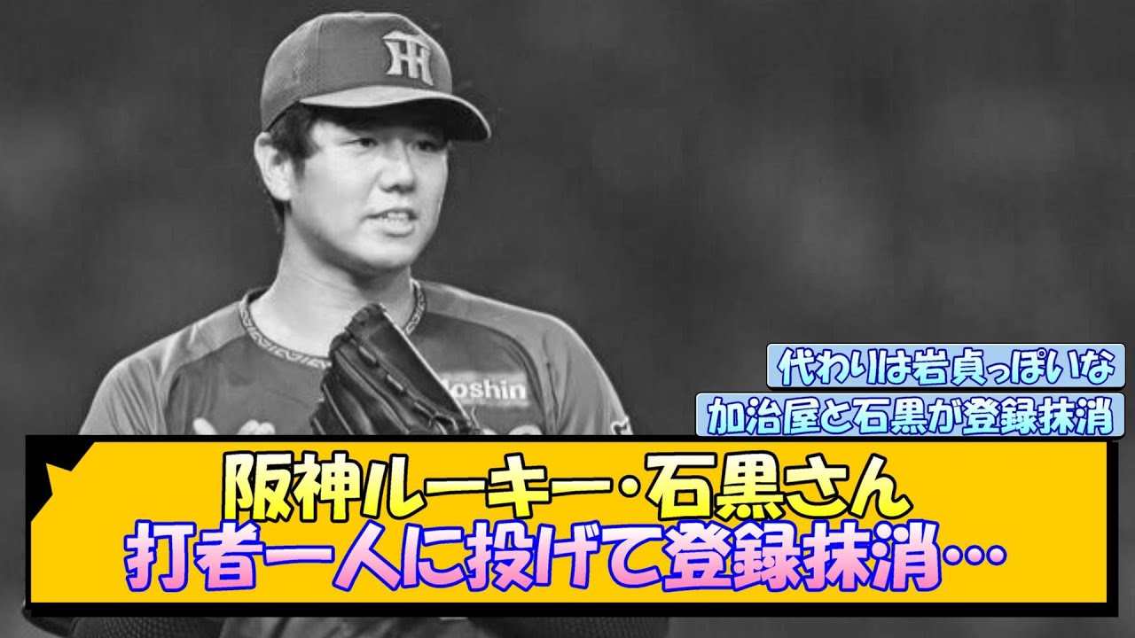 阪神ルーキー・石黒さん、打者一人に投げて登録抹消【なんJ/2ch/5ch/ネット 反応 まとめ/阪神タイガース/岡田監督石黒佑弥/岩貞祐太/加治屋蓮】