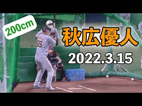 大谷翔平より7cm高い秋広優人のフリー打撃練習 打ち方 フォーム【巨人 2022年3月15日 プロ野球オープン戦】