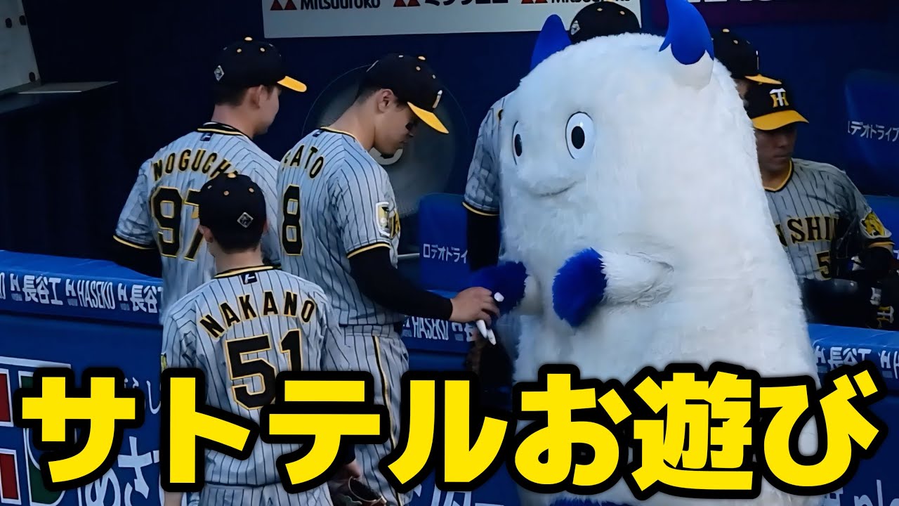 【ふざけてパンチもお見舞い】球場マスコットに夢中になってしまった佐藤輝明 2024.8.4
