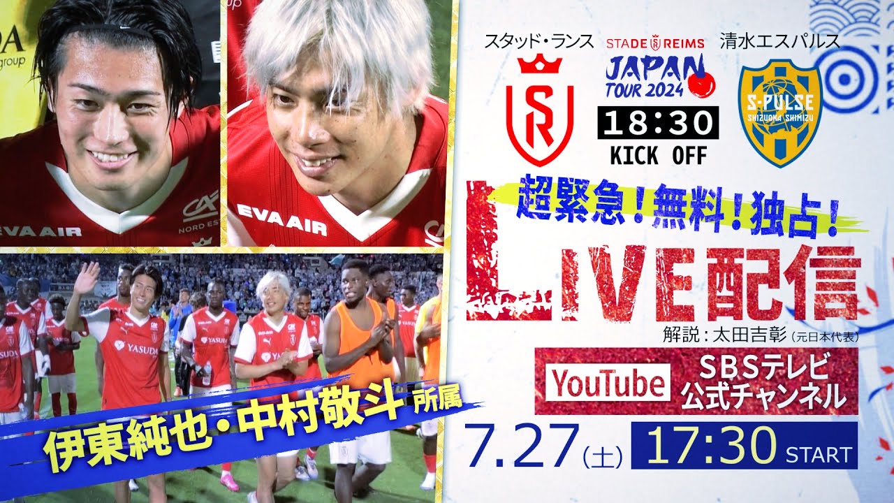 【独占LIVE配信/アーカイブ】スタッド・ランス vs 清水エスパルス | サッカー日本代表・中村敬斗、伊東純也出場【スタッド・ランス ジャパン・ツアー2024】