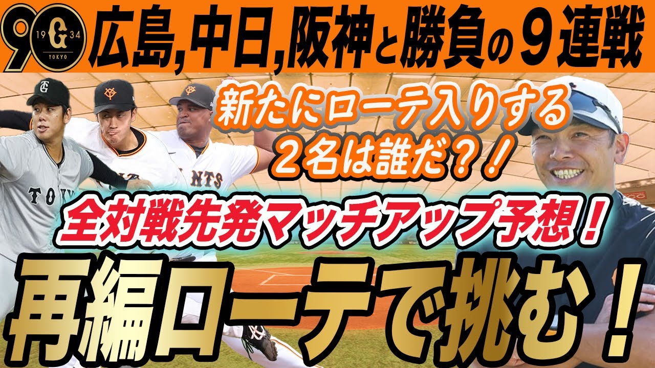 【巨人】勝負の9連戦先発ローテ再編へ!9試合の先発マッチアップ予想!阪神・広島との大勝負へ! 読売ジャイアンツ
