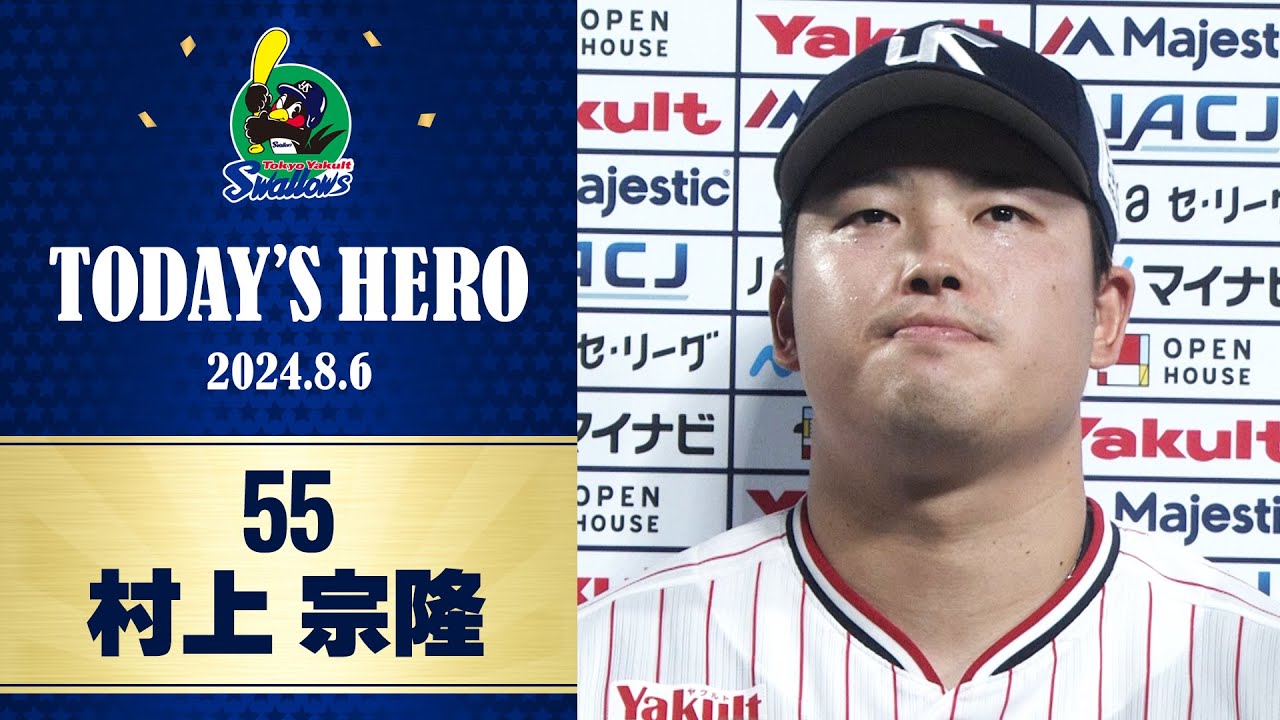 【ヒーローインタビュー】サヨナラ打を放った村上宗隆選手|8月6日 東京ヤクルトスワローズvs阪神タイガース(神宮球場)