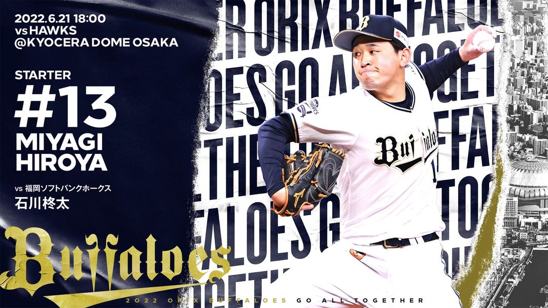 #6月21日 #福岡ソフトバンク戦 #予告先発投手 #宮城大弥 #京セラドーム大阪 #18時00分試合開始 #Bs2022 #buffaloes #baseball #ORIX #プロ野球 18時00分試合開始6月21日baseballBs2022buffaloesNPB Pacific LeagueOfficial MediaORIXORIX BuffaloesORIX Buffaloes Official Mediaオリックス・バファローズプロ野球予告先発投手京セラドーム大阪宮城大弥福岡ソフトバンク戦 NPBHUB.COM | The Fanbase of Nippon Baseball & Nippon Professional Baseball