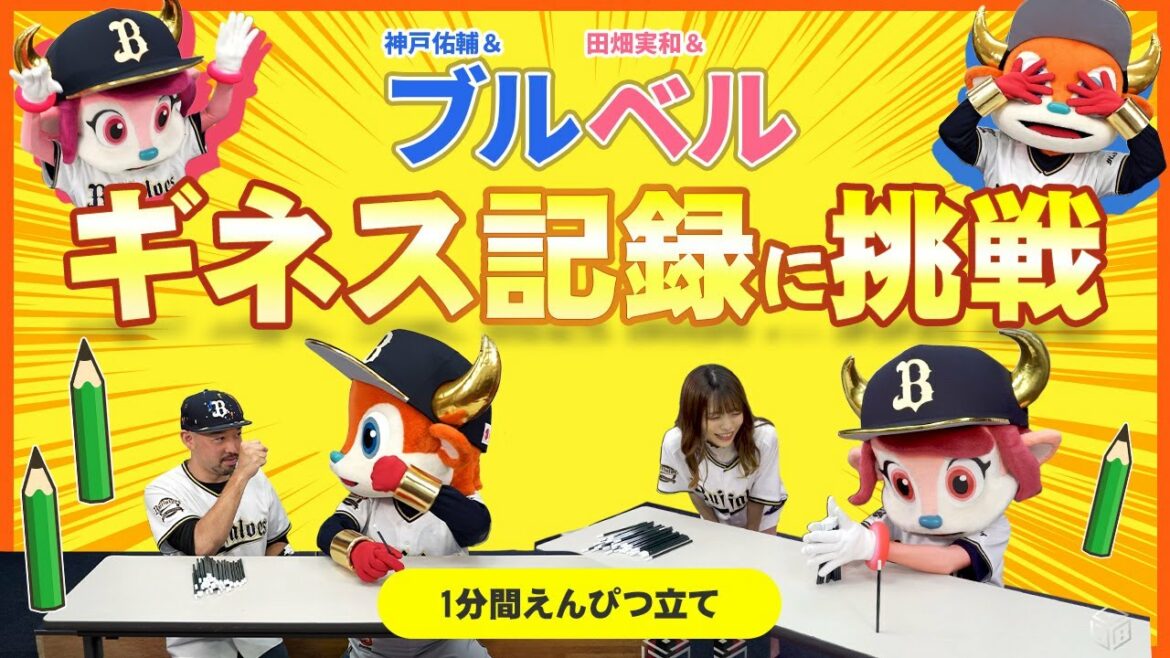 バファローブル&ベルがギネス記録に挑戦する新企画がスタート!初回の種目は「1分間えんぴつ立て」。ボイスナビゲーター神戸さんと、うたリポ田畑さんをアシスタントに迎え、ギネス記録である1分間で55本以上のえんぴつ立てに挑戦します!全編はBPBにて!