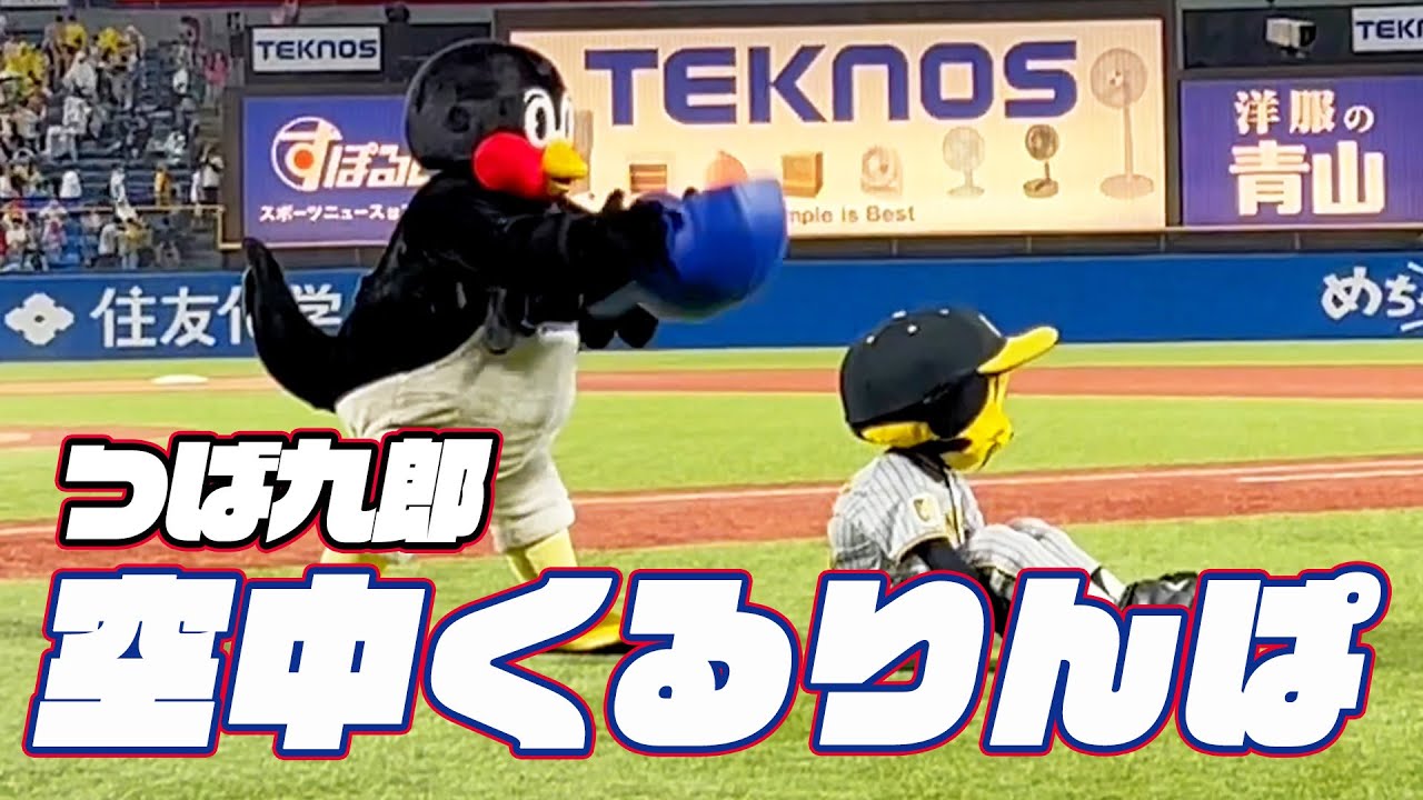 雨の中で挑戦!つば九郎空中くるりんぱ|2024年8月7日 阪神戦(神宮球場)