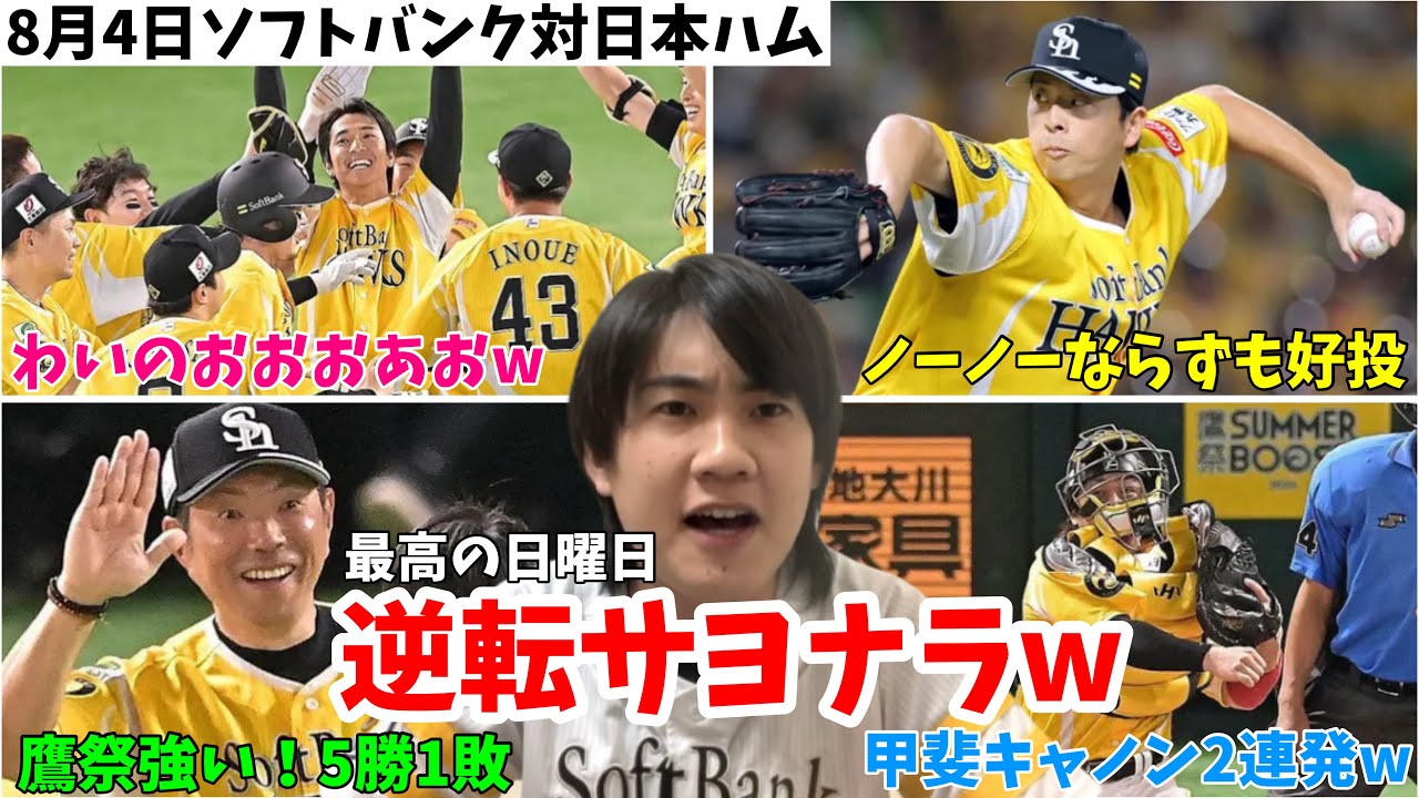 【たつる】最後は柳町!逆転サヨナラ勝利!大関ノーヒットノーランならずも好投、海野もナイスリード&勝利を呼び込む栗原の活躍 2024年8月4日 福岡ソフトバンク対北海道日本ハム