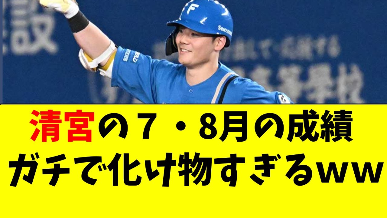 【日ハム】清宮幸太郎の7月・8月の成績が化け物すぎる件w 北海道日本ハムファイターズ、清宮幸太郎の7月・8月の成績が化け物すぎる件w 楽曲提供:株式会社アイリング Hokkaido Nippon-Ham Fighters北海道日本ハムファイターズ清宮幸太郎 NPBHUB.COM | The Fanbase of Nippon Baseball & Nippon Professional Baseball