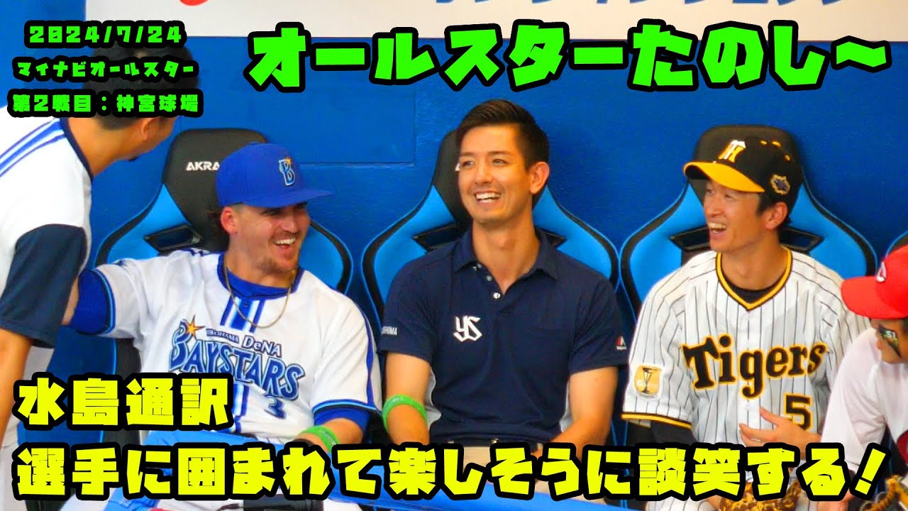 水島通訳も初オールスター!!選手に囲まれて談笑する!! 2024/7/24 マイナビオールスターゲーム2024 第2戦:明治神宮球場