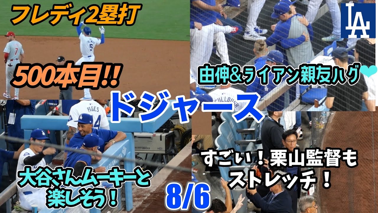 8/6 Phillies vs Dodgers第8戦 ㊗️フレディ通算2塁打500本はスゴイ❗️ストーンも笑顔、由伸&ライアン君しっかりハグからの頭なでなで𐤔 グラスノーが姐さんみたいになってたり、キケと大谷さんの絡みが面白い𐤔 試合前のダグアウトが楽しすぎた♡