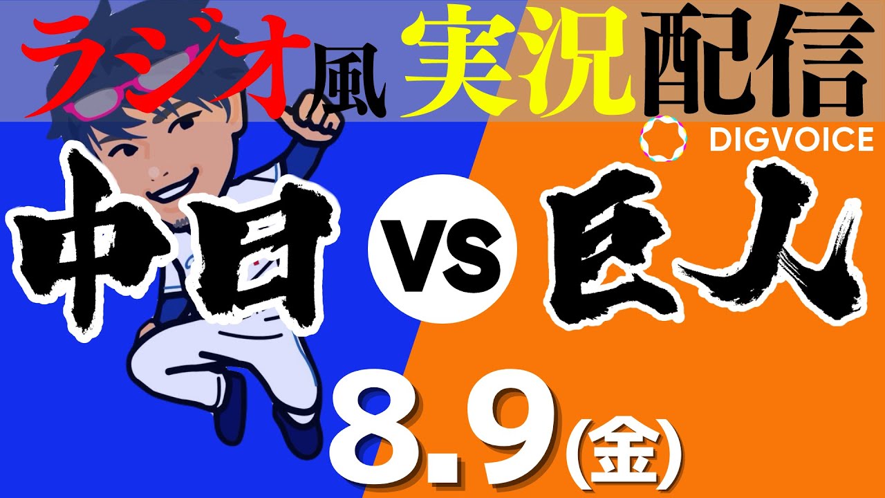 【ドラゴンズ応援実況】8/9(金) 読売ジャイアンツVS中日ドラゴンズ【プロ野球ライブ ラジオ風実況】