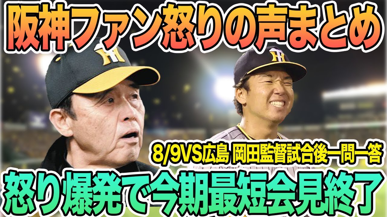 【阪神ファンの怒りの声まとめ】怒り爆発で今期最短会見終了 岡田試合後一問一答 #阪神 #阪神タイガース #岡田監督 #佐藤輝明 #村上頌樹 #伊藤将司 #広島