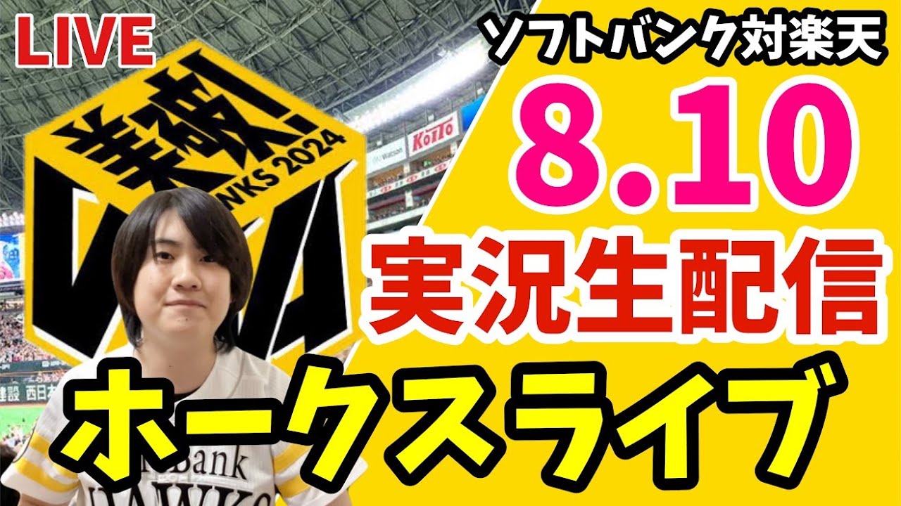 ソフトバンクホークス対楽天イーグルスの実況観戦ライブ! 8月10日 【ホークスライブ】