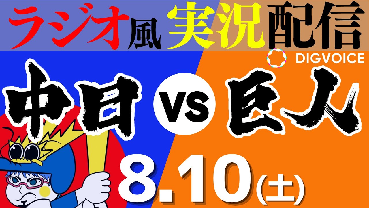 【ドラゴンズ応援実況】8/10(土) 読売ジャイアンツVS中日ドラゴンズ【プロ野球ライブ ラジオ風実況】