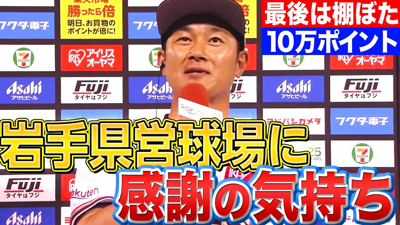 惜しくも安打は出なかったが、やはり地元の星。来年春盛岡に新しい球場がオープンすることから、これが岩手県営球場最後のプロ野球となった今日の試合でお立ち台に上がった東北楽天・銀次。球場に詰めかけた多くのファンに顔を綻ばせながら、その思いを語りました。