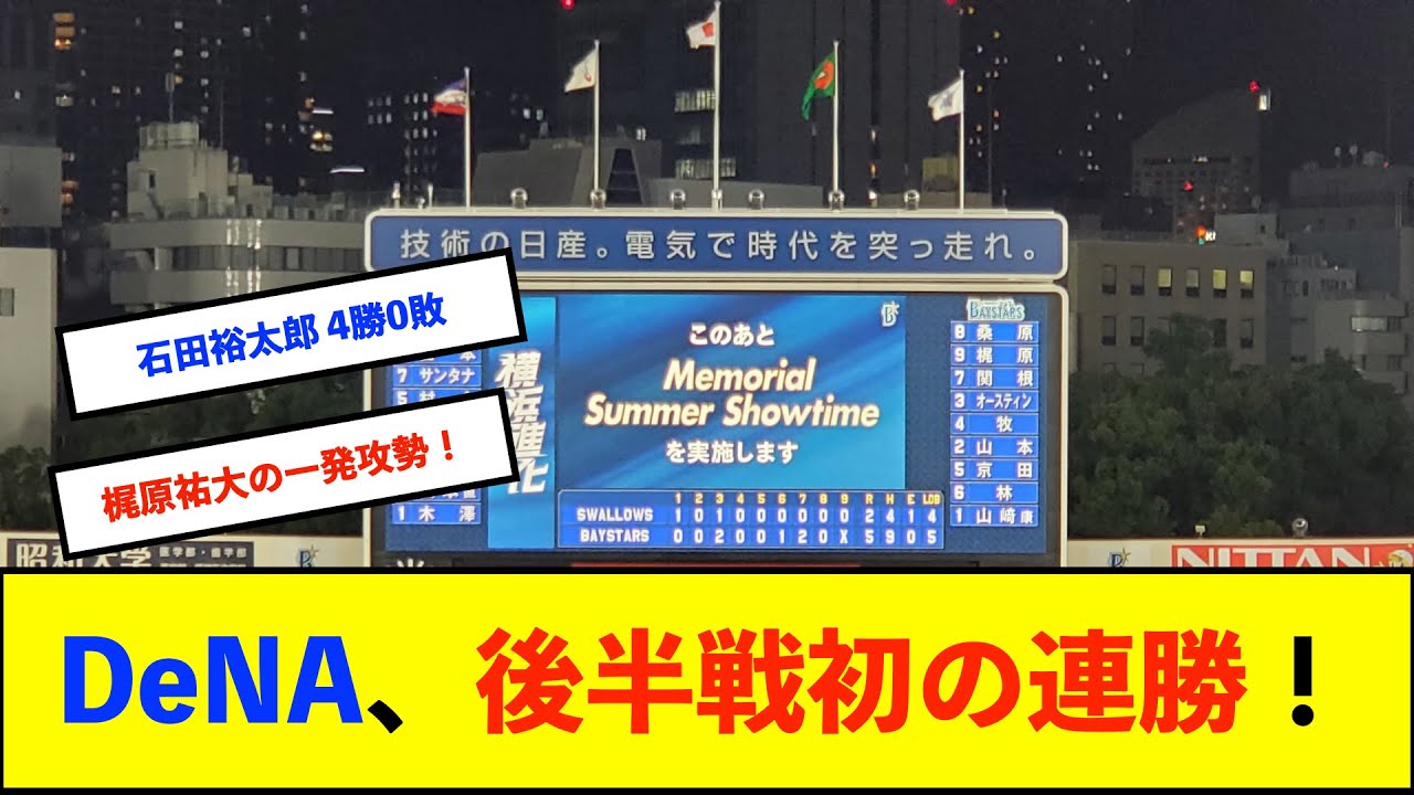 【横浜優勝】ベイスターズ 5-2 スワローズ 先発石田裕が7回2失点の力投で今季4勝目!【De速】