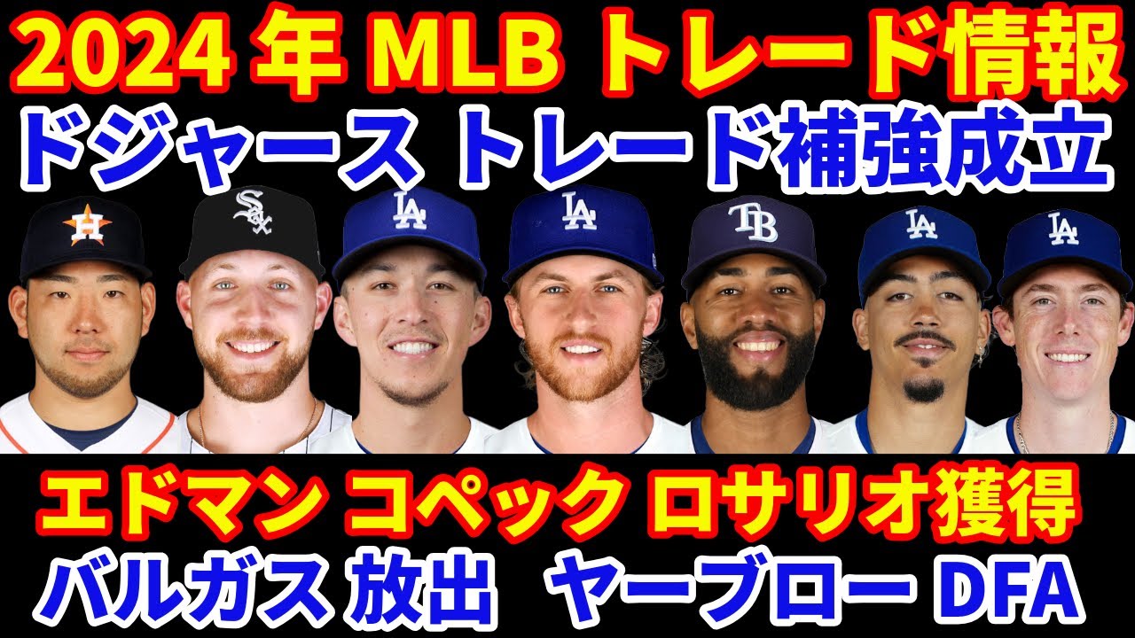 2024年MLBトレード補強情報‼️ ドジャース トレード成立 エドマン コペック ロサリオ獲得で堅実補強‼️ バルガス放出 ヤーブローDFA この後も期限までクロシェ狙いか⁉️ 菊池雄星アストロズへ