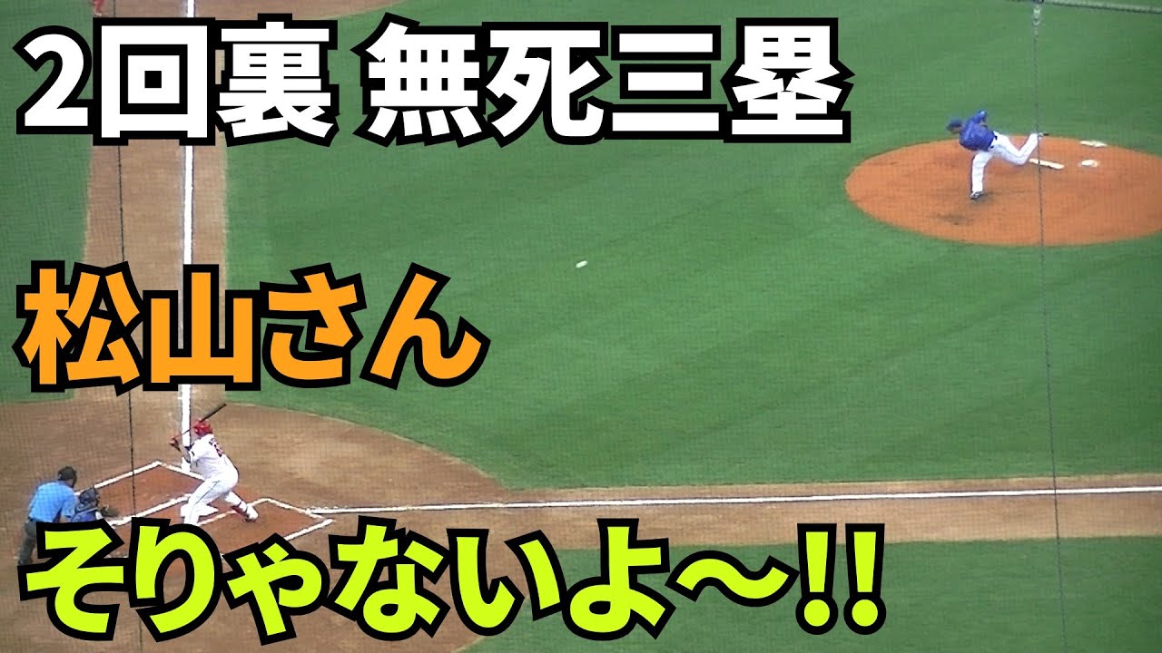 【現地撮影映像】そりゃないよ。スタメン松山竜平 第1打席。1回裏無死三塁、先制のチャンスでの打席。力ない打球はセカンドフライ。 2024年7月30日 vs DeNA