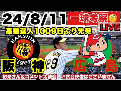 【一球考察】阪神vs広島 24/8/11 高橋遥人先発 応援LIVE 初見コメント大歓迎 #阪神タイガース #広島東洋カープ #阪神