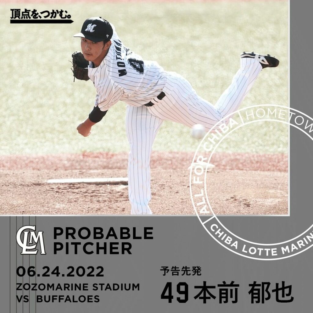 06.24.2022 予告先発:#本前郁也 投手 #chibalotte #CLM30th Chiba Lotte MarinesChiba Lotte Marines Official MediachibalotteCLM30thNPB Pacific LeagueOfficial Media千葉ロッテマリーンズ本前郁也 NPBHUB.COM | The Fanbase of Nippon Baseball & Nippon Professional Baseball