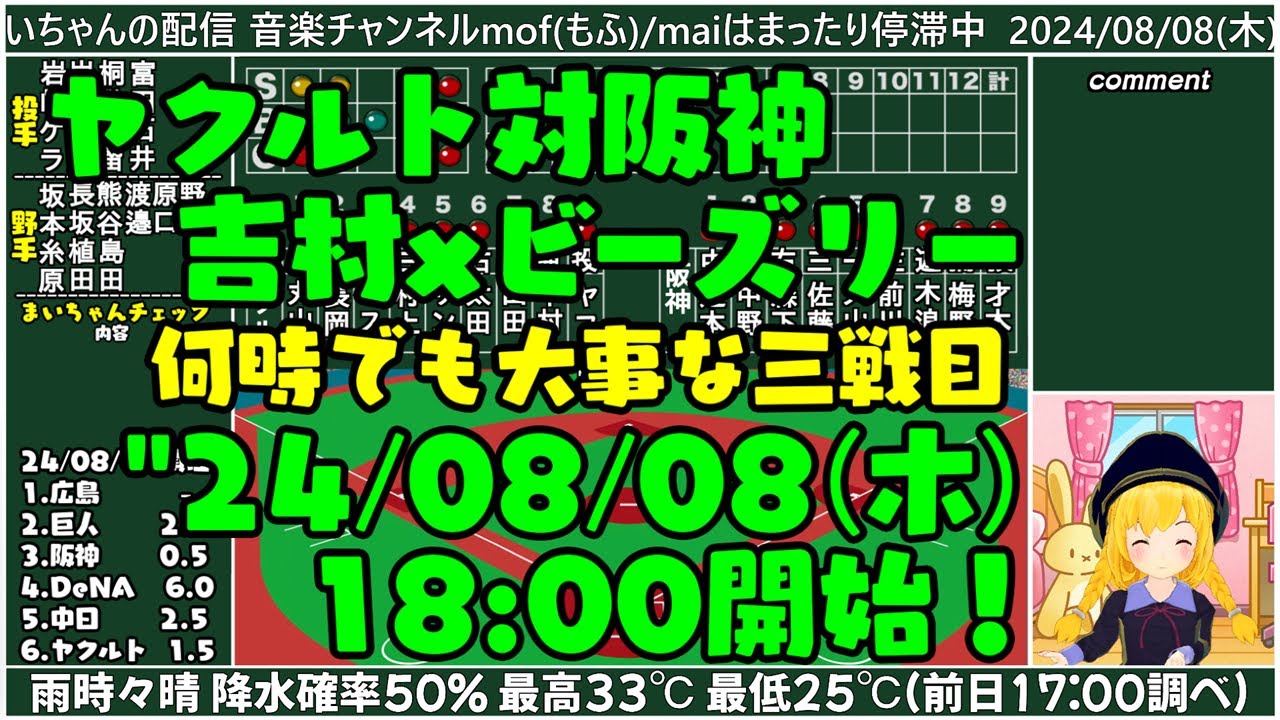 【ヤクルト対阪神】”24/08/08 対ヤクルト 十六回戦 何時でも大事な三戦目!【まいちゃんラジオ同時視聴ライブ!】