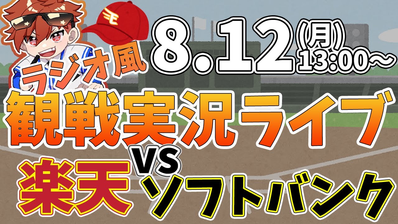 【観戦ライブ配信】徹底解説!プロ野球 楽天 VS ソフトバンク #rakuteneagles #東北楽天ゴールデンイーグルス 8/12【ラジオ実況風同時視聴配信】