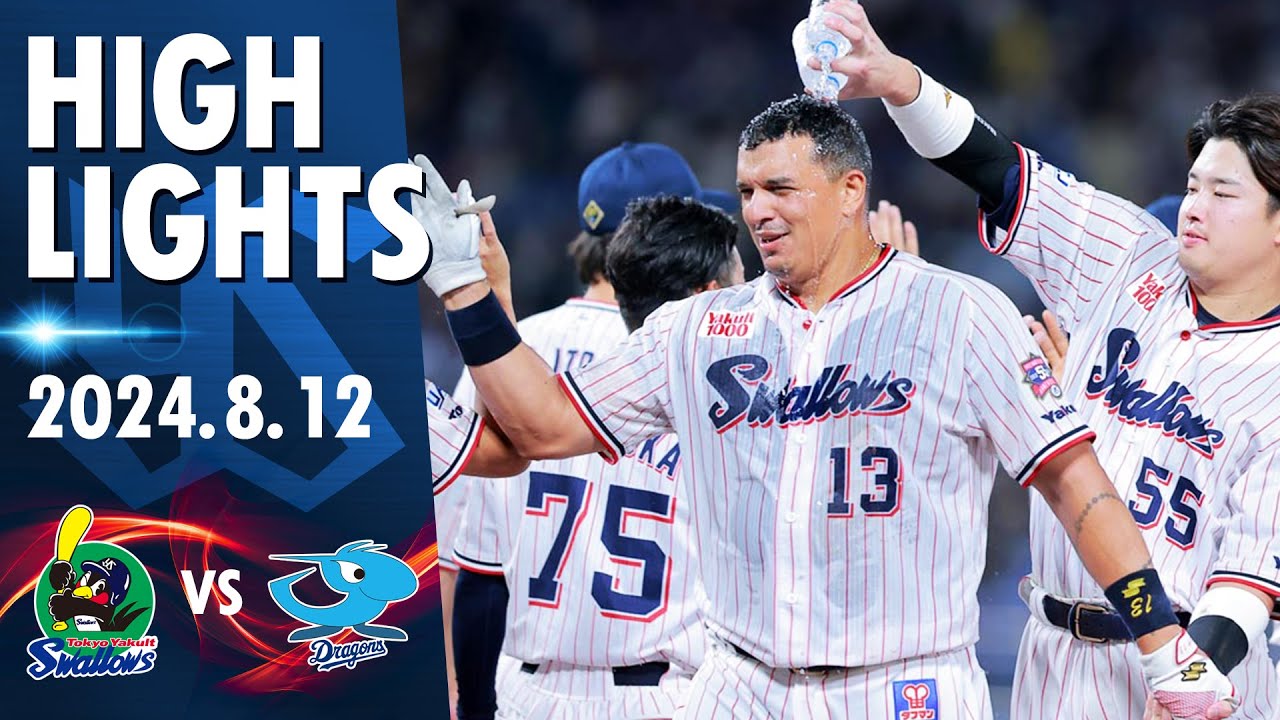 【スワローズ活躍シーン】オスナ選手の犠牲フライでサヨナラ勝ち!サンタナ選手が12号ソロ含む2安打3打点!|8月12日 東京ヤクルトスワローズvs中日ドラゴンズ(神宮球場)
