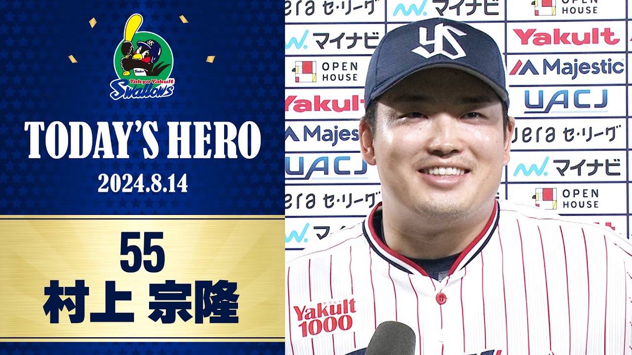 【ヒーローインタビュー】試合を決めるサヨナラタイムリー!村上宗隆選手|8月14日 東京ヤクルトスワローズvs中日ドラゴンズ(神宮球場)