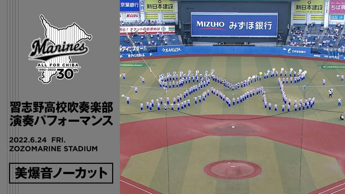 6月24日(金)オリックス戦では、習志野市立習志野高校吹奏楽部が来場し、試合前にグラウンド内でパフォーマンスと国歌演奏を行いました。