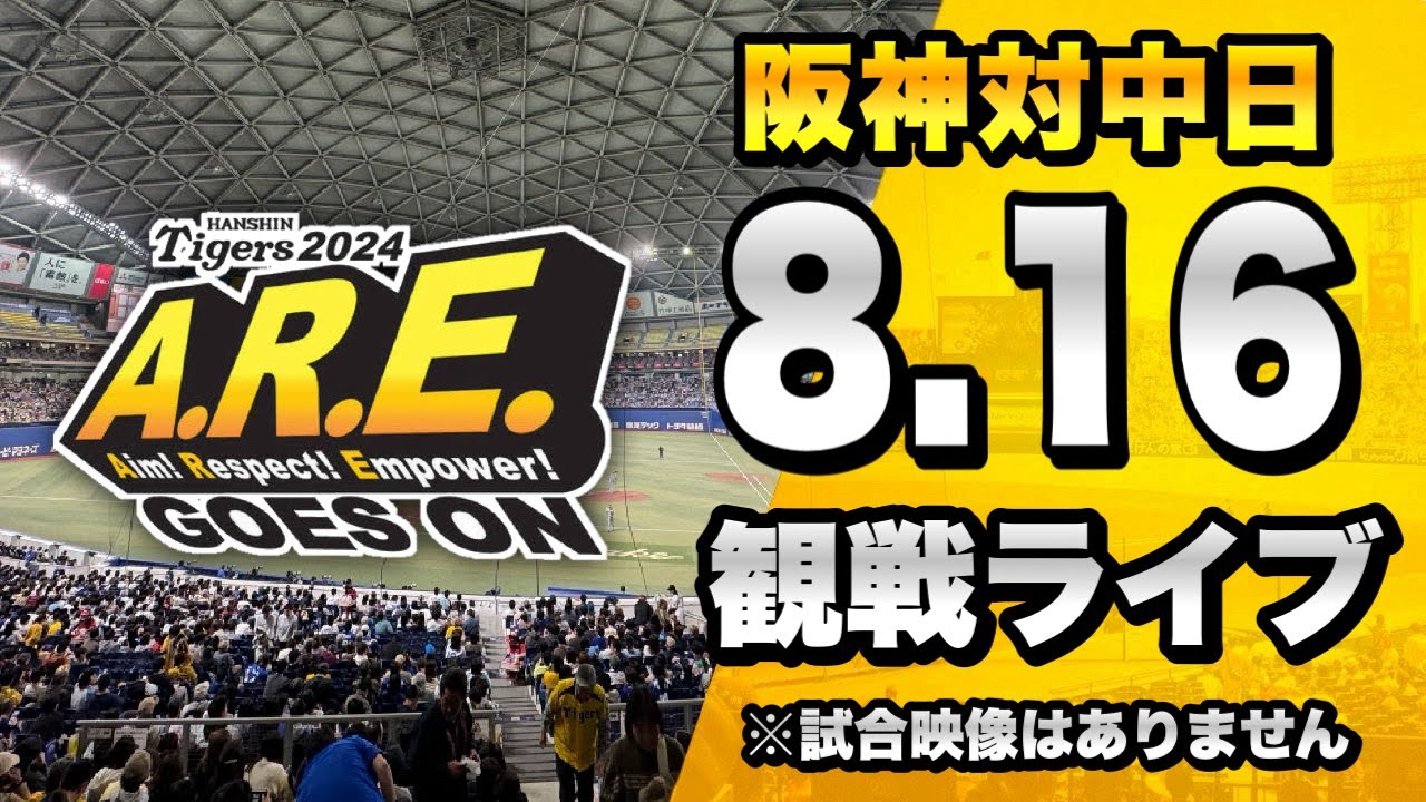 8/16 阪神タイガース 対 中日ドラゴンズのセ・リーグ公式戦を一緒に観戦するライブ配信です、本配信に試合のLIVE中継映像はございませんので予めご了承ください。