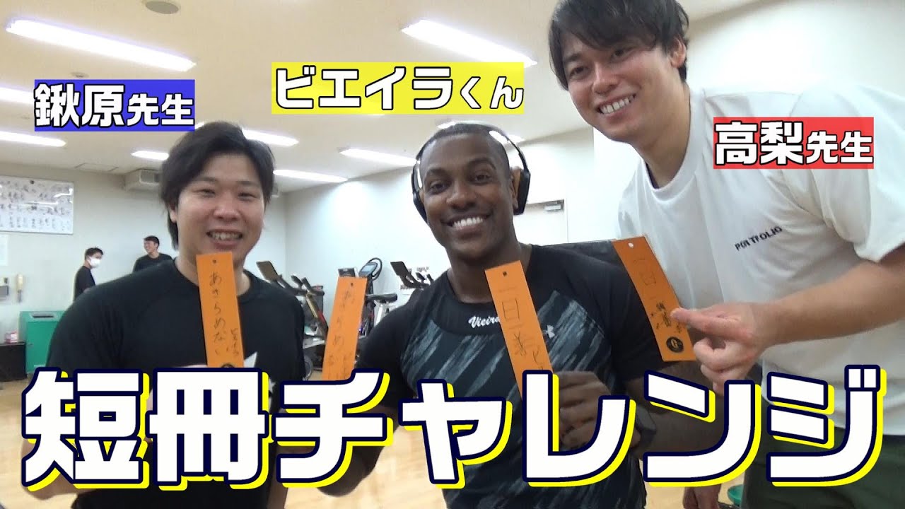 7月7日(木)ヤクルト戦は七夕にちなんで、場内1階コンコースに願いやメッセージを吊るせる笹を設置します!高梨雄平、鍬原拓也両先生の指導の下、ビエイラくんが日本語で短冊に挑戦しました!