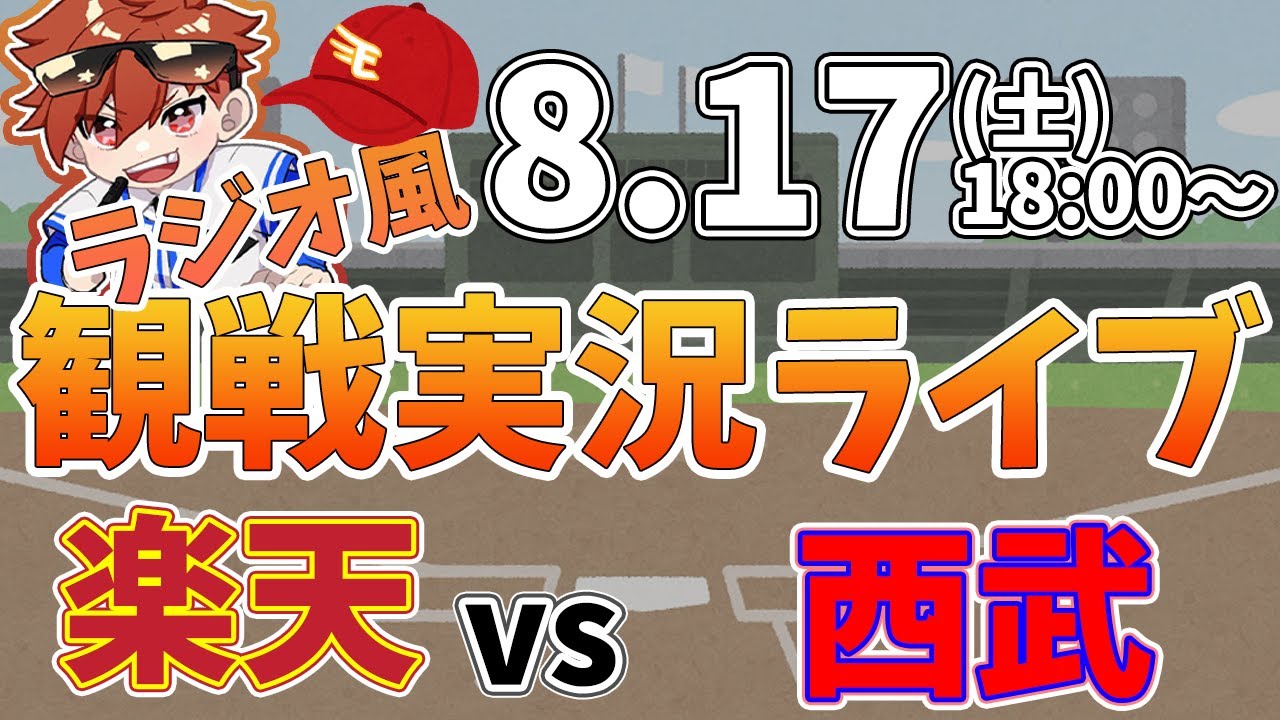 【観戦ライブ配信】徹底解説!プロ野球 楽天イーグルス VS 西武 #rakuteneagles #東北楽天ゴールデンイーグルス 8/17【ラジオ実況風】