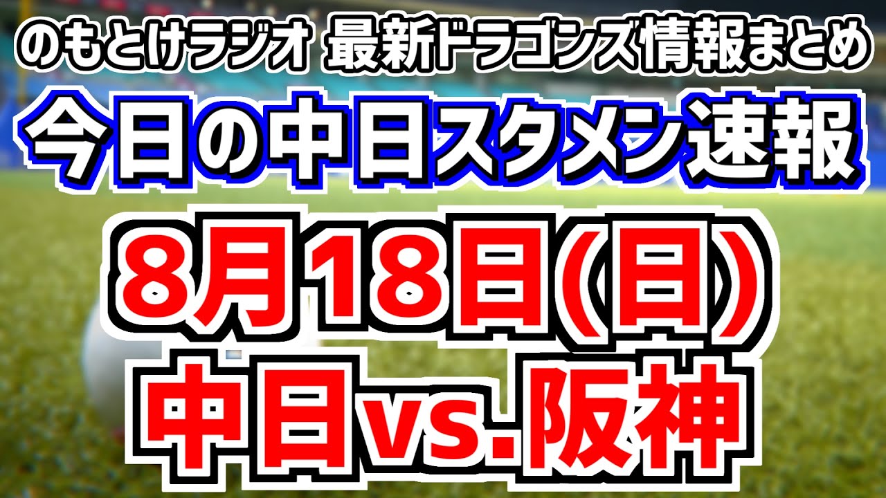 勝てばカード勝ち越し 全く読めない中日スタメンを見守る放送 8月18日(日) 今日の中日ドラゴンズスタメン速報/試合直前雑談 中日vs.阪神 のもとけラジオ番外編 メヒア登録抹消話も