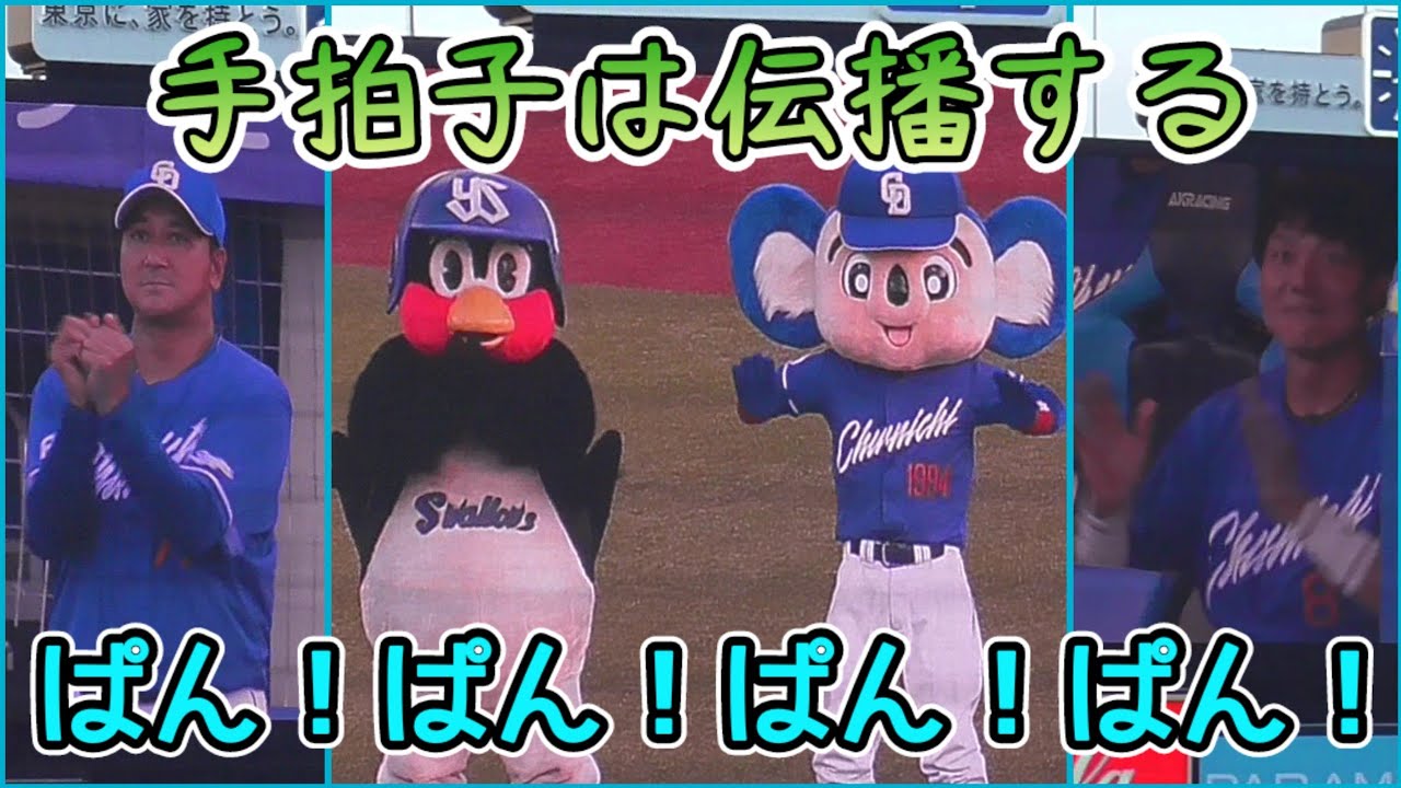 2024/8/12 つば九郎&ドアラの手拍子が落合コーチや大島洋平に伝播する