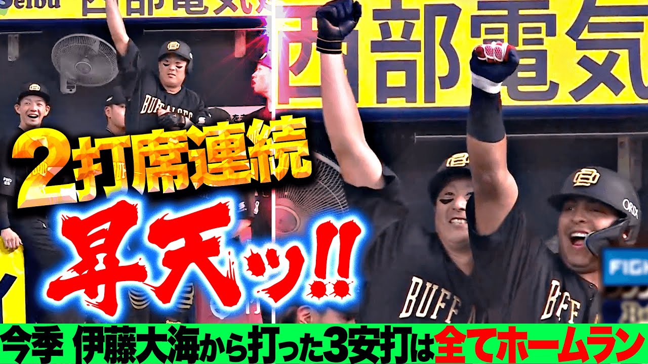 久々のスタメン起用となったオリックス・杉本裕太郎。その第1打席、初球をバックスクリーンへ運んだ同点ソロホームラン!! さらに4回にはストレートをレフトスタンドへ叩き込んだ2打席連発の3ランホームランで勝ち越し!! 起用に応える2打席連発弾となりました!!!