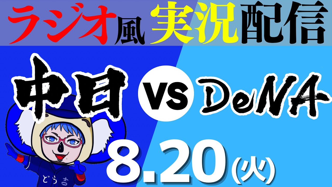 【ドラゴンズ応援実況】8/20(火) 横浜DeNAベイスターズVS中日ドラゴンズ【プロ野球ライブ ラジオ風実況】