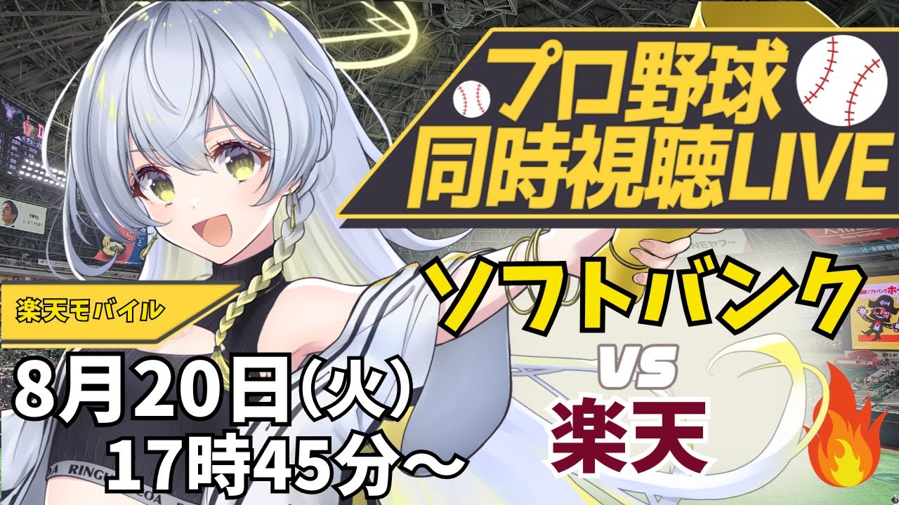 【プロ野球同時視聴LIVE】8/20 福岡ソフトバンクホークス VS 東北楽天ゴールデンイーグルス戦 🔥みんなで一緒に応援しよう!【野球系VTuber凛宮スコア】 #vtuber #プロ野球