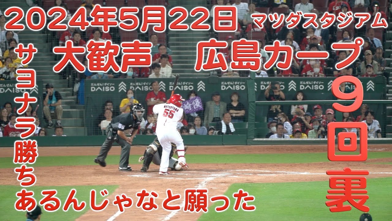 2024年5月22日広島カープ サヨナラ勝ちを願い ドキドキしながら盛り上がった9回裏のスタジアムの様子と得点シーン
