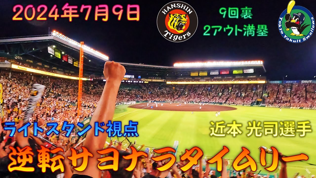【ライトスタンド視点】 2024年7月9日 阪神VS東京ヤクルト 9回裏2アウト、近本光司選手逆転サヨナラ2点タイムリーヒット 【上げずにはいられなかった】