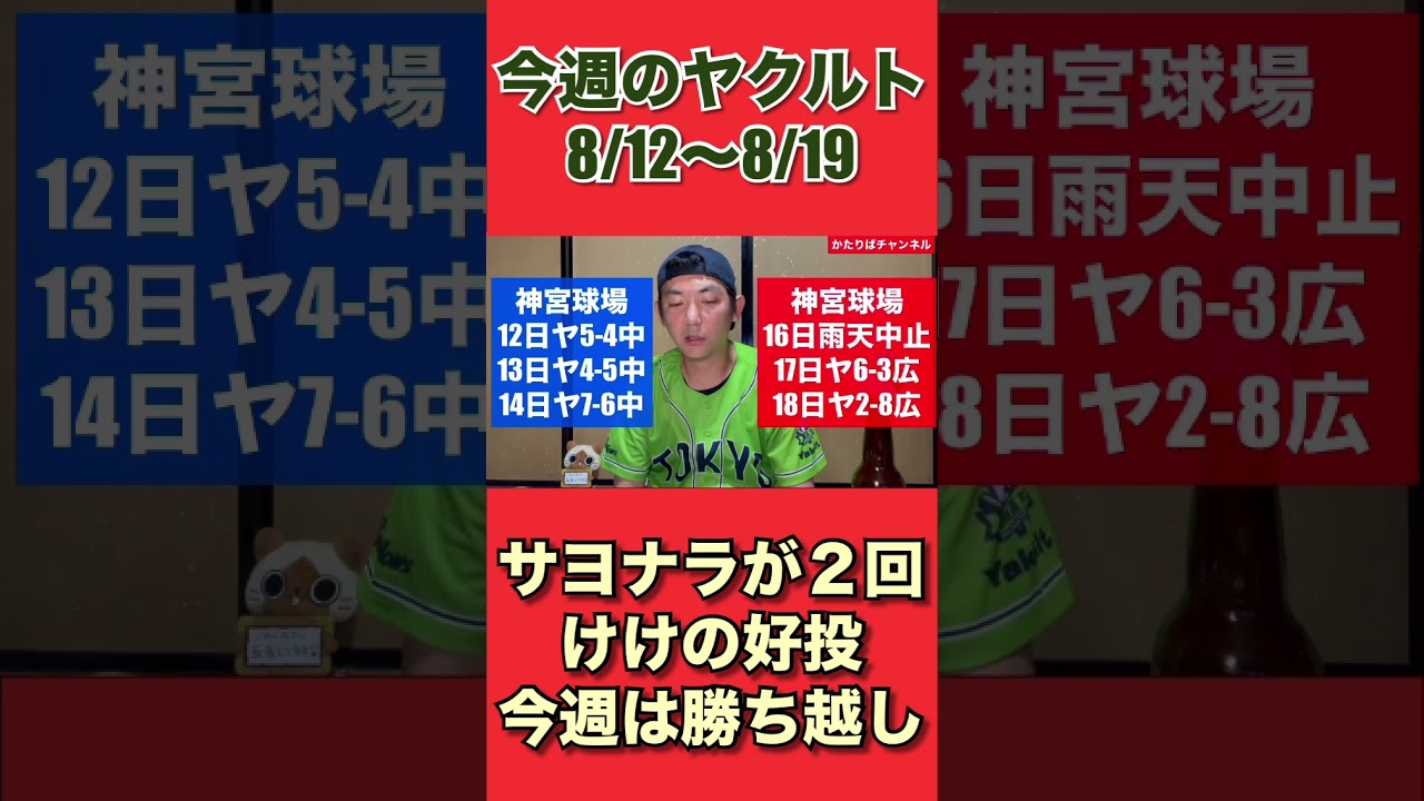 今週のヤクルト『8/12〜8/18』サヨナラ多めの1週間。けけも久しぶりの好投。今週は勝ち越し! #swallows #スワローズ #ヤクルト #ヤり返せ #村上宗隆 #オスナ