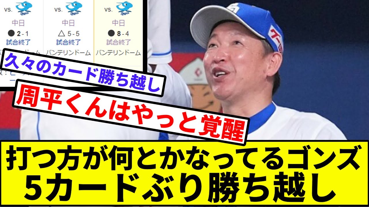 【大野雄大、本拠地50勝目!】打つ方が何とかなってるゴンズ、5カードぶり勝ち越し【なんJ反応】【プロ野球反応集】【2chスレ】【1分動画】【5chスレ】【中日ドラゴンズ】【阪神タイガース】【セリーグ】