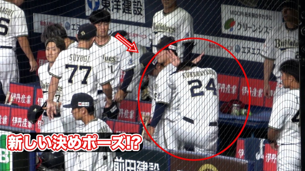 照れながら新しい執念ポーズを太田椋にやってみせる紅林弘太郎 2024年8月23日 オリックスvsロッテ 京セラドーム #紅林弘太郎 #太田椋 #頓宮裕真 #渡部遼人 #オリックスバファローズ ORIX Buffaloesオリックス・バファローズ太田椋 NPBHUB.COM | The Fanbase of Nippon Baseball & Nippon Professional Baseball