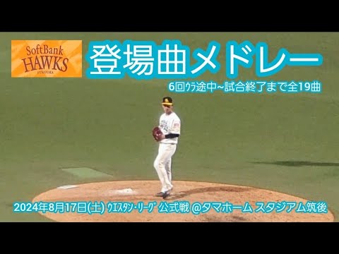 20240817 全19曲!途中参戦、福岡ソフトバンクホークス2軍の登場曲メドレー 登場曲まとめ@タマホーム スタジアム筑後[ウエスタン・リーグ 2軍戦]タマスタ筑後