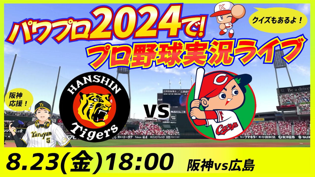 【パワプロ2024】【阪神応援】8/23 阪神タイガース vs 広島東洋カープ パワプロで!プロ野球実況ライブ【他球団ファンも大歓迎!】
